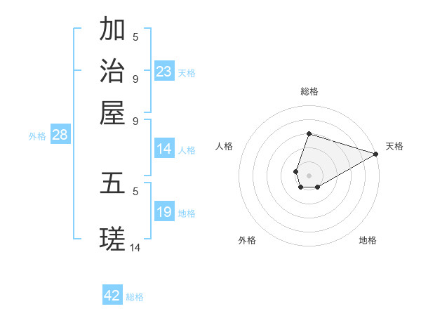 加治屋 五瑳さんの天格は23画の5点!