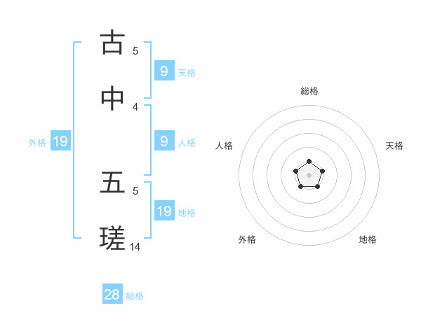 古中 五瑳さんを姓名の画数から五運を鑑定