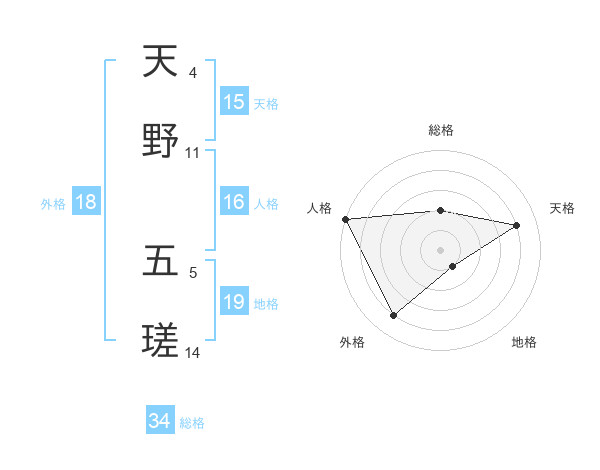 天野 五瑳さんを姓名の画数から五運を鑑定