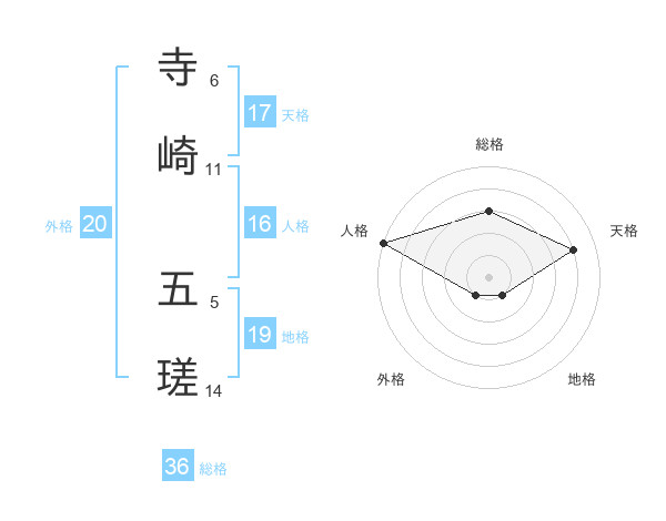 寺崎 五瑳さんを姓名の画数から五運を鑑定