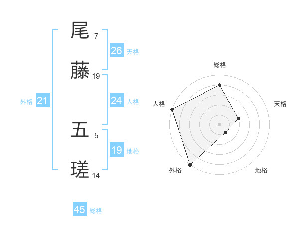 尾藤 五瑳さんの外格は21画の5点!