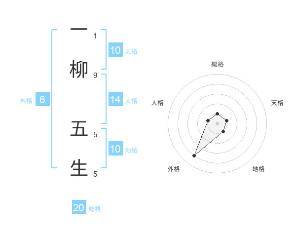 一柳 五生さんの総格は20画の1点!