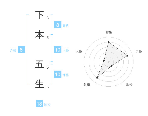 下本 五生さんの天格は8画の4点!