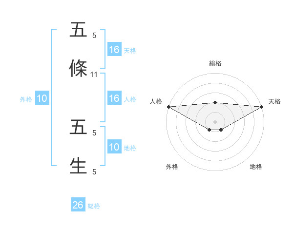 五條 五生さんの天格は16画の5点!
