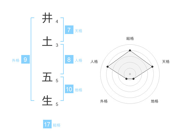 井土 五生さんの総格は17画の4点!