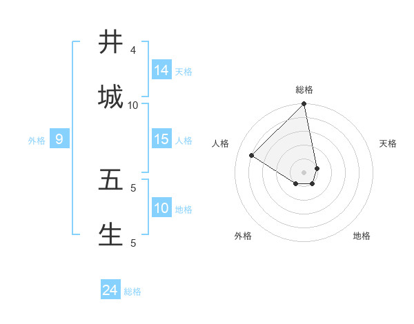 井城 五生さんの総格は24画の5点!