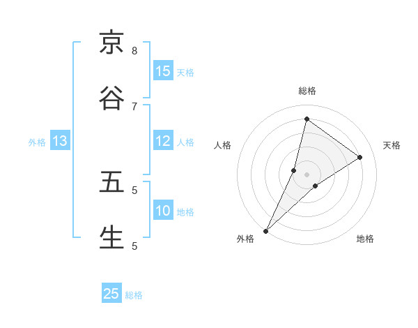 京谷 五生さんの外格は13画の5点!