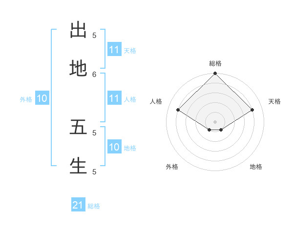 出地 五生さんの総格は21画の5点!