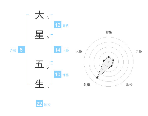 大星 五生さんの総格は22画の1点!