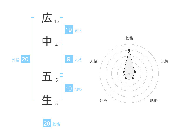 広中 五生さんの総格は29画の4点!