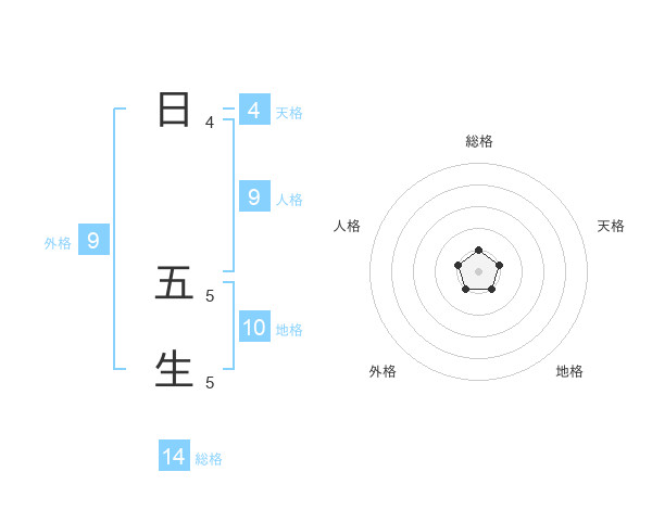 日 五生さんの総格は14画の1点!