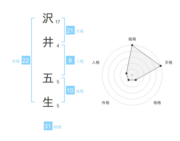 沢井 五生さんの天格は21画の5点!