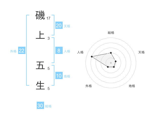 磯上 五生さんの外格は22画の1点!
