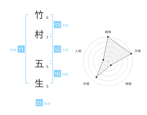 竹村 五生さんの天格は13画の5点!