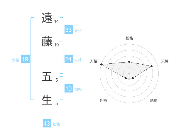 遠藤 五生さんの総格は43画の2点!