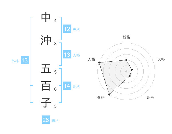 中沖 五百子さんを姓名の画数から五運を鑑定