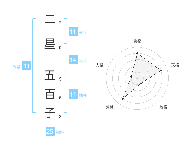 二星 五百子さんの外格は11画の4点!