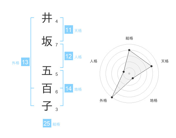 井坂 五百子さんを姓名の画数から五運を鑑定