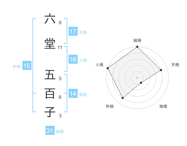 六堂 五百子さんの外格は15画の4点!