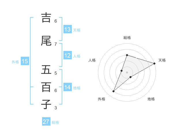 吉尾 五百子さんの外格は15画の4点!