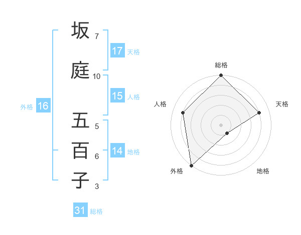 坂庭 五百子さんを姓名の画数から五運を鑑定