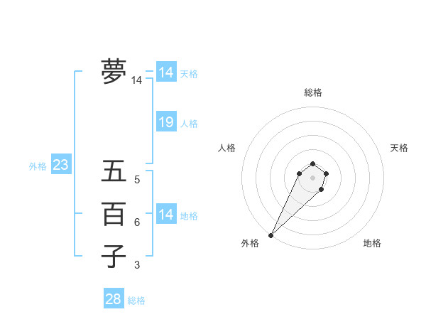 夢 五百子さんの外格は23画の5点!
