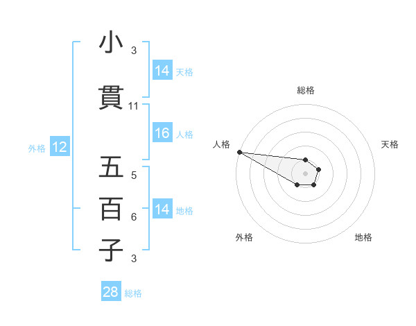 小貫 五百子さんを姓名の画数から五運を鑑定