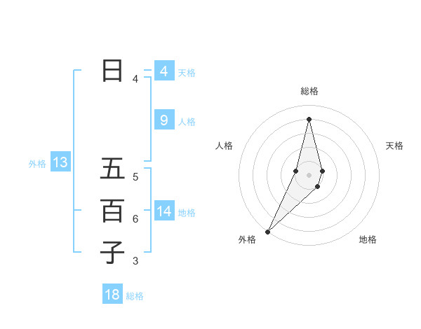 日 五百子さんの外格は13画の5点!
