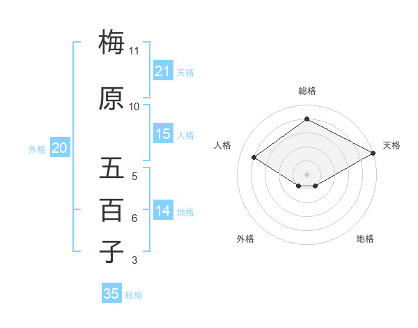 梅原 五百子さんの総格は35画の4点!