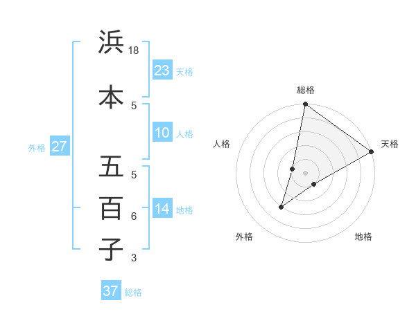 浜本 五百子さんの総格は37画の5点!