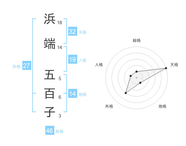 浜端 五百子さんの天格は32画の5点!