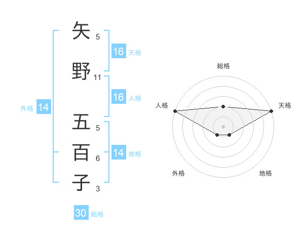 矢野 五百子さんを姓名の画数から五運を鑑定