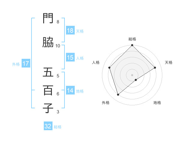 門脇 五百子さんの天格は18画の4点!