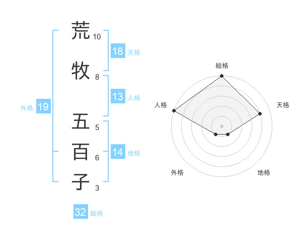 荒牧 五百子さんの天格は18画の4点!