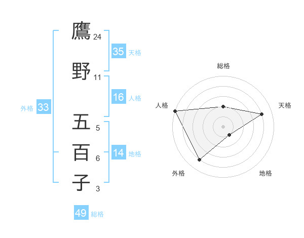 鷹野 五百子さんを姓名の画数から五運を鑑定