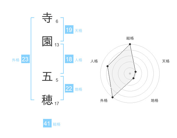 寺園 五穂さんを姓名の画数から五運を鑑定