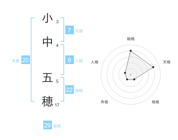 小中 五穂さんの総格は29画の4点!