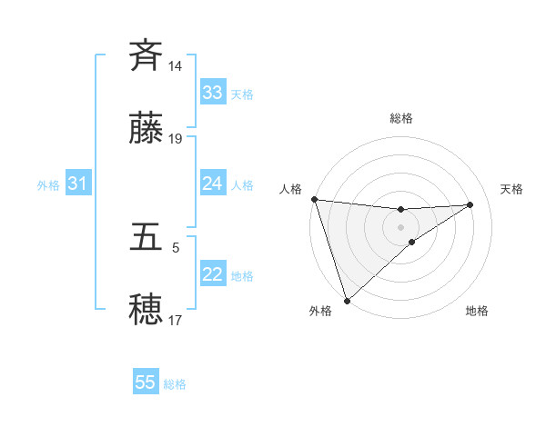 斉藤 五穂さんの総格は55画の1点!