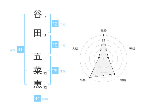 谷田 五菜恵さんを姓名の画数から五運を鑑定