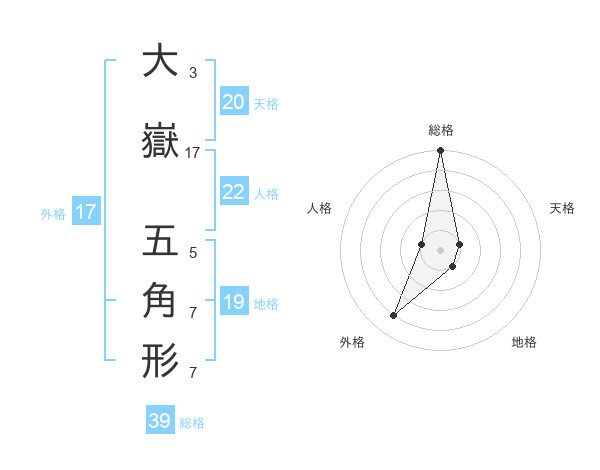 大嶽 五角形さんを姓名の画数から五運を鑑定