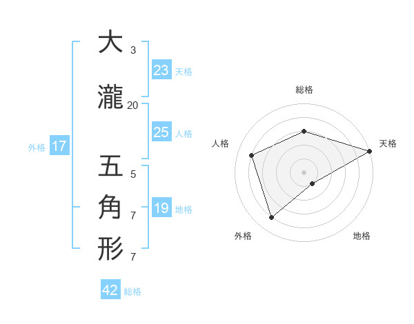 大瀧 五角形さんを姓名の画数から五運を鑑定