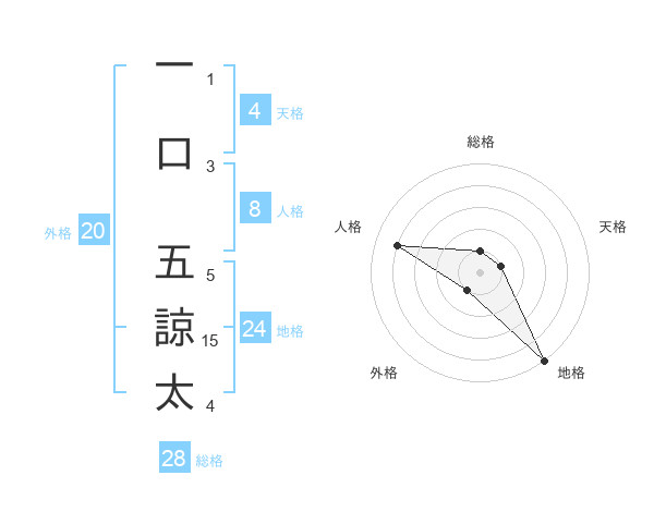 一口 五諒太さんを姓名の画数から五運を鑑定