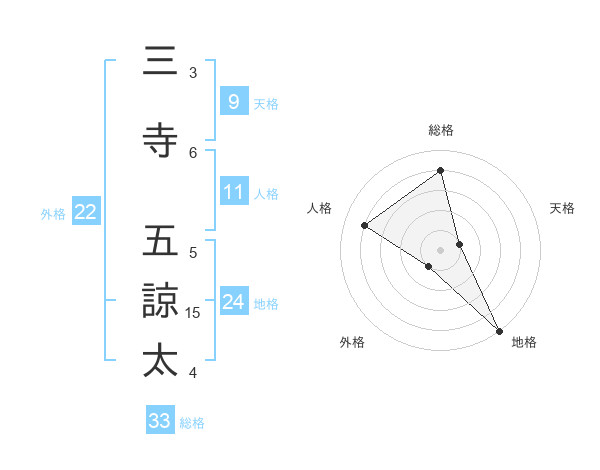 三寺 五諒太さんを姓名の画数から五運を鑑定