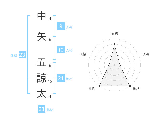 中矢 五諒太さんを姓名の画数から五運を鑑定