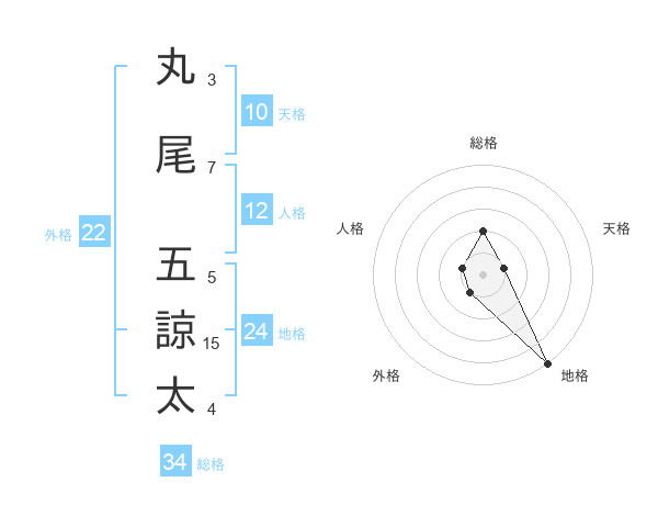 丸尾 五諒太さんの総格は34画の2点!