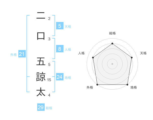 二口 五諒太さんを姓名の画数から五運を鑑定