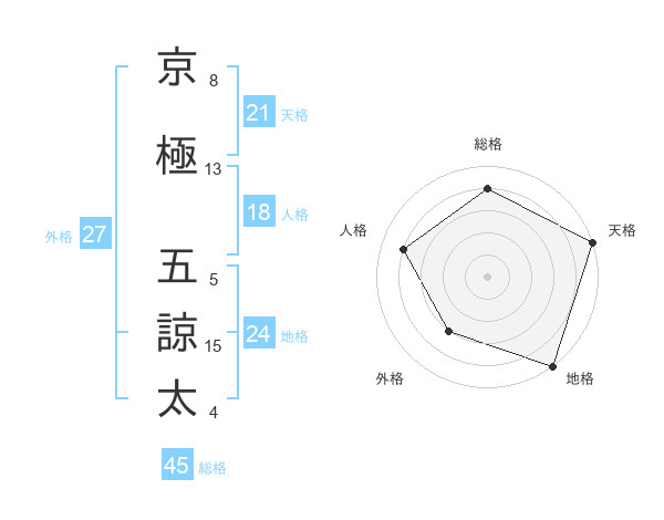 京極 五諒太さんを姓名の画数から五運を鑑定