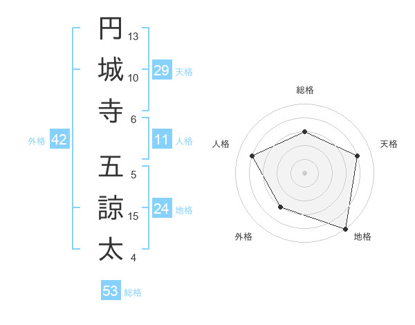 円城寺 五諒太さんを姓名の画数から五運を鑑定