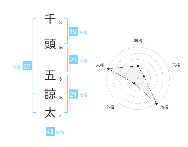 千頭 五諒太さんを姓名の画数から五運を鑑定