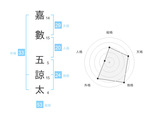 嘉數 五諒太さんを姓名の画数から五運を鑑定